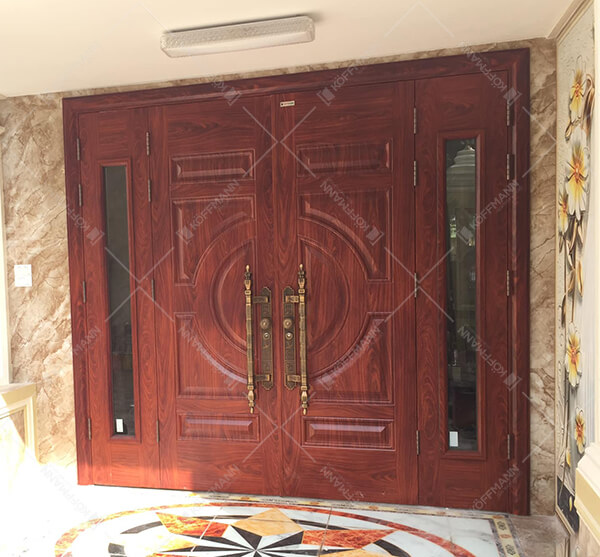 Mẫu cửa pano 4 cánh thép vân gỗ làm cửa chính cho ngôi nhà đẹp