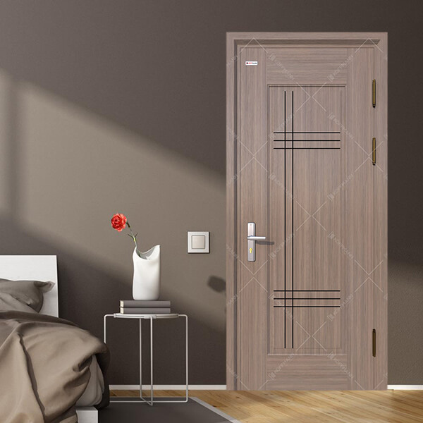 Cửa thép vân gỗ dạng pano đơn giản nhưng vẫn hấp dẫn, cuốn hút cho cửa thông phòng